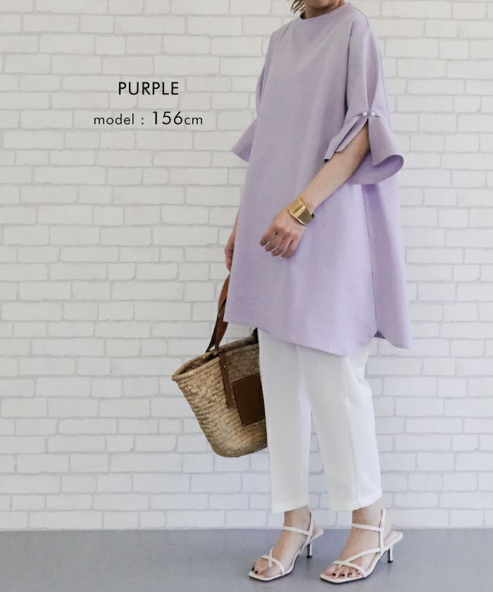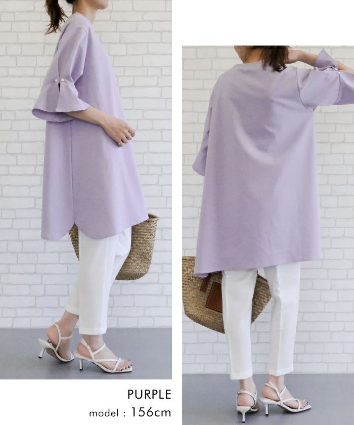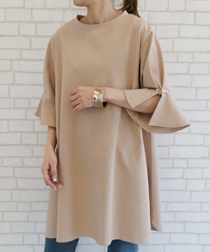 • 袖に施したパールがかわいい袖パール付きフレアチュニック