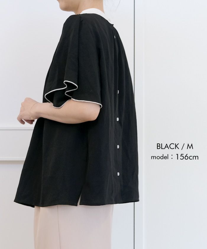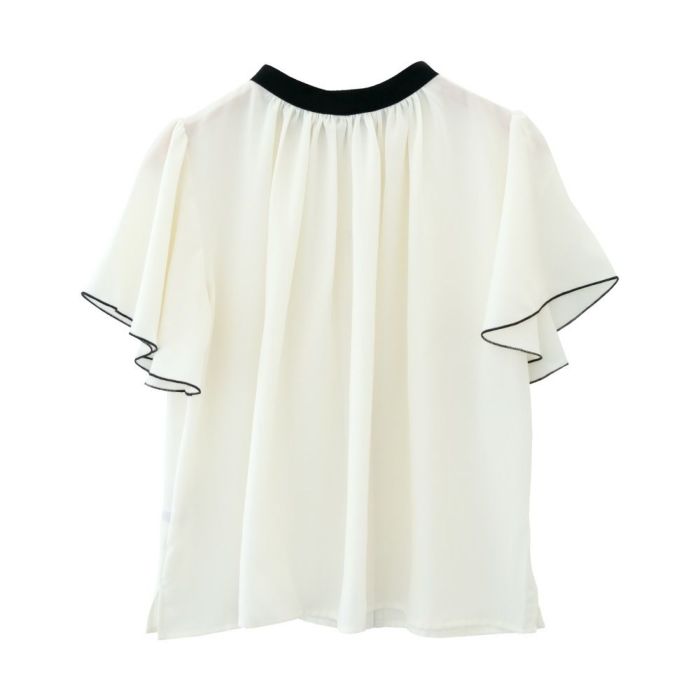 • ふわりと揺れるフレア袖が上品な魅力を引き立てる!バイカラーフレア袖ブラウス