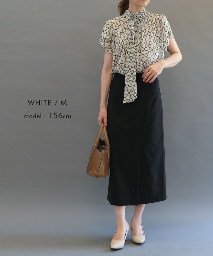 送料無料 総柄シアーネックリボンブラウス 春 夏 秋 ≪ゆうメール便配送10・代引不可≫ | アクアガレージ aquagarage