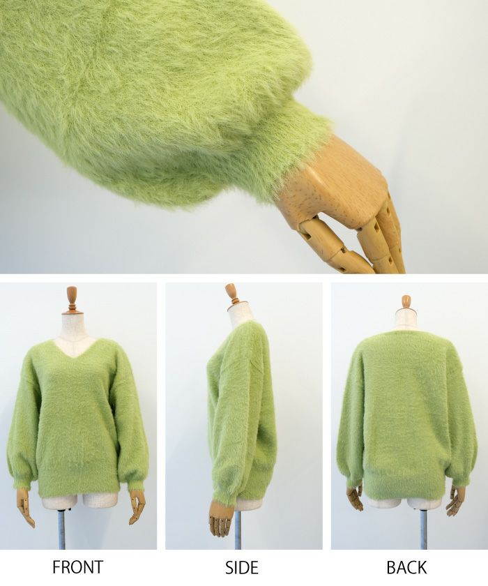 • トレンドカラーが魅力なVネックシャギーニットトップス