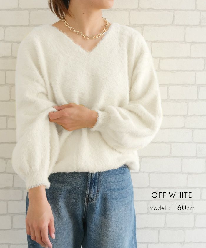 Vネックシャギーニットトップス 秋 冬 レディース | アクアガレージ aquagarage