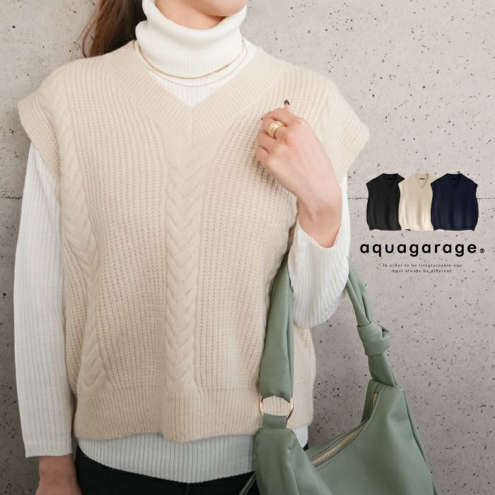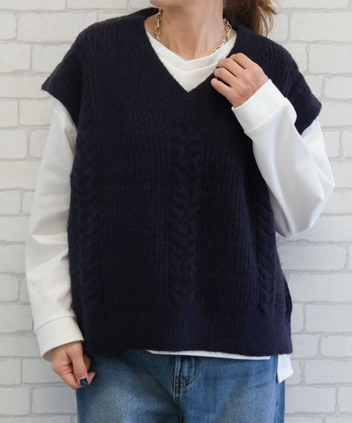 【最終値下げ価格】ケーブストル編みニットベスト レディース | アクアガレージ aquagarage