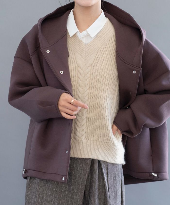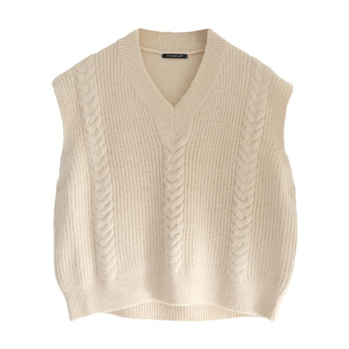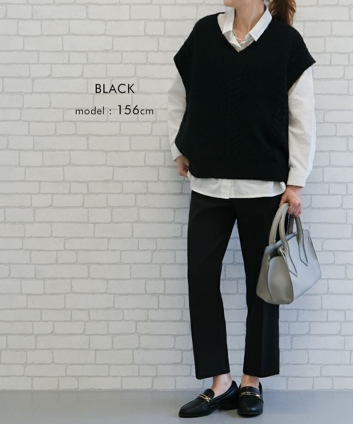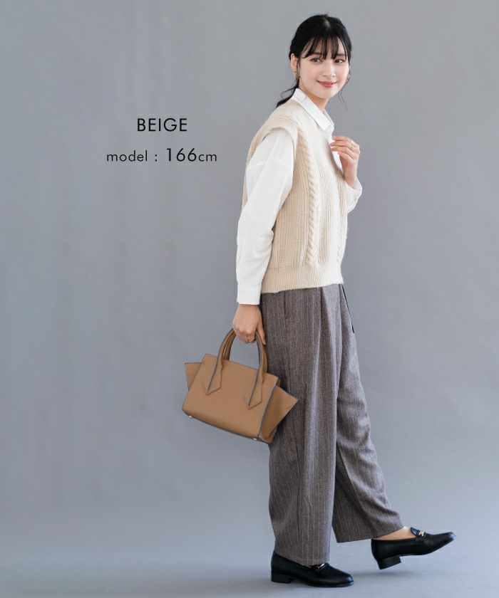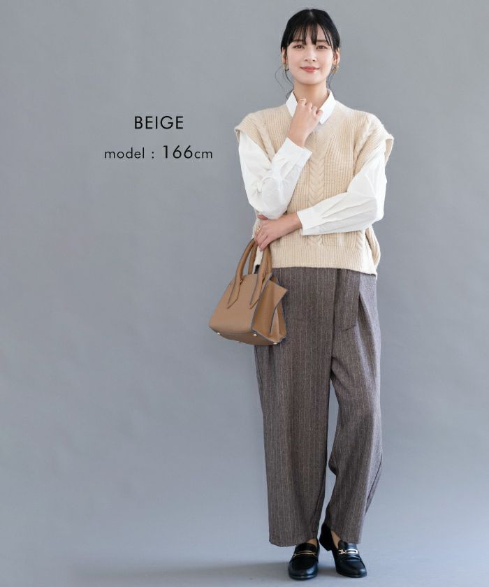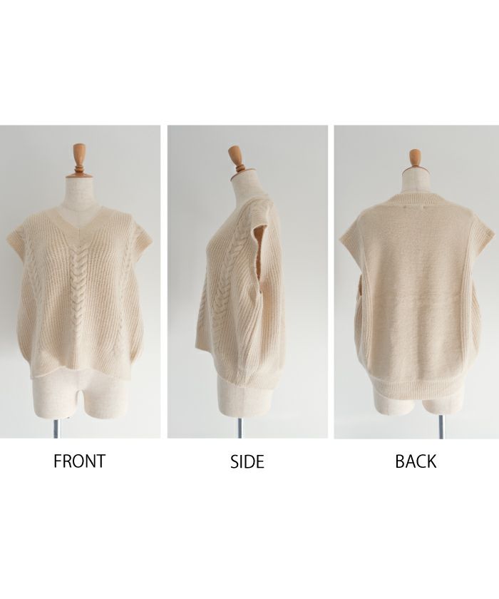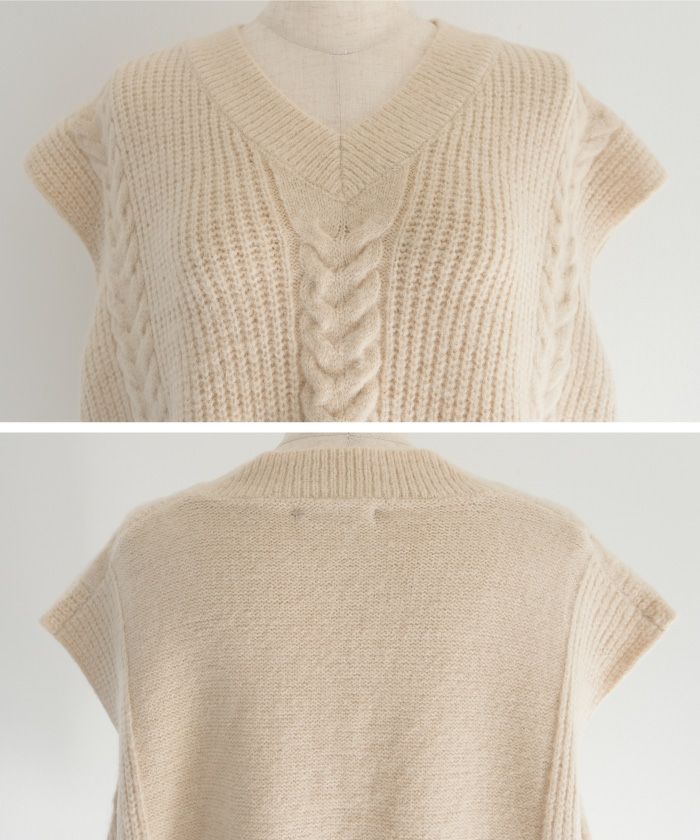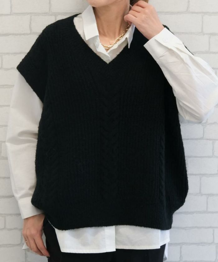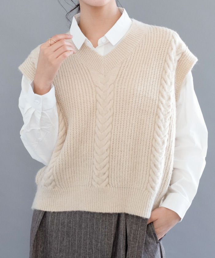 • 立体感のあるケーブル編みが大人可愛いニットベスト