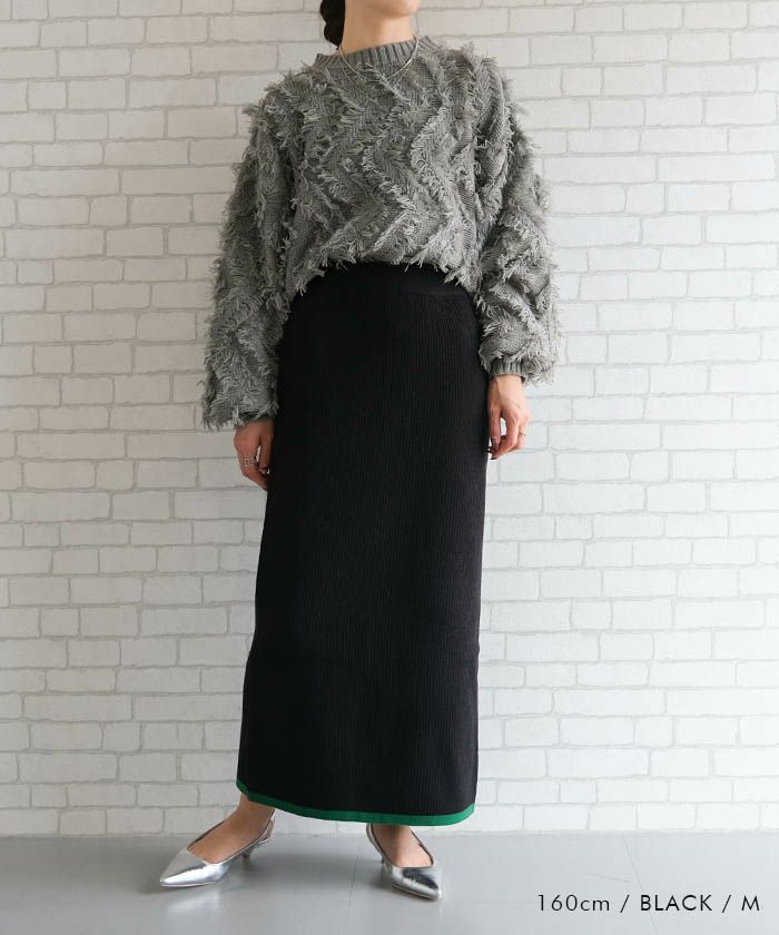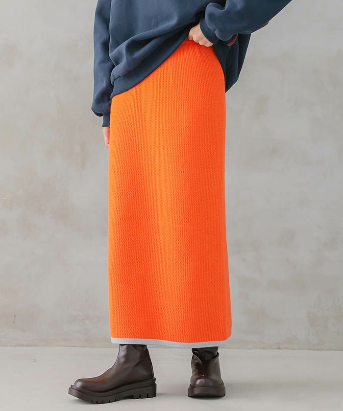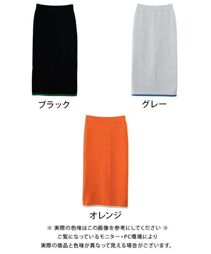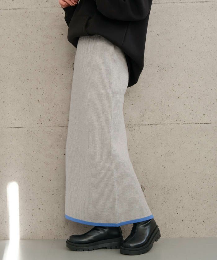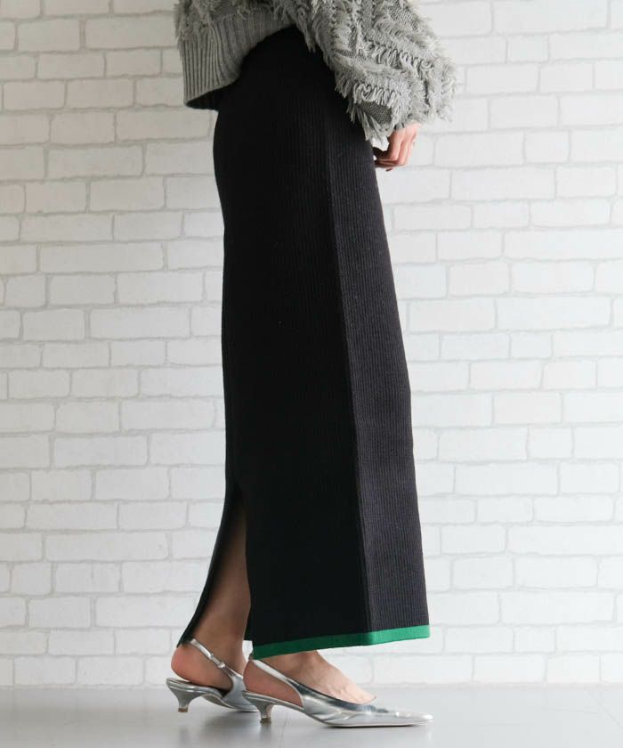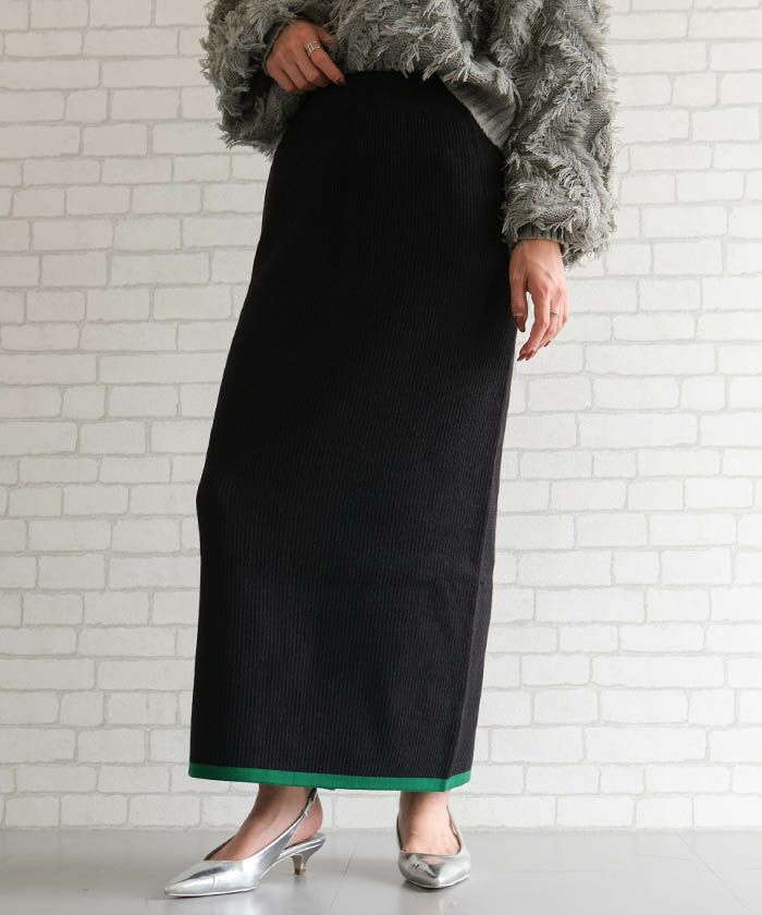 裾バイカラーリブニット裏起毛ナロースカート レディース 秋 冬 | アクアガレージ aquagarage