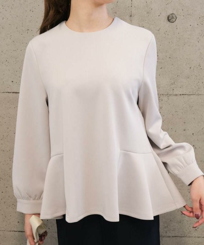 • きこなし美シルエ!袖パール付きペプラムトップス