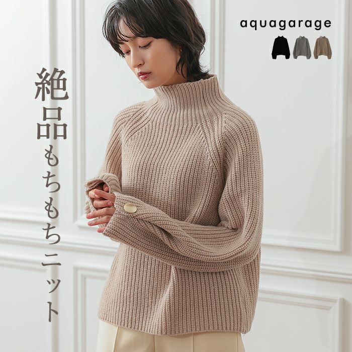 袖ボタンハイネックニットトップス レディース 秋 冬 | アクアガレージ aquagarage