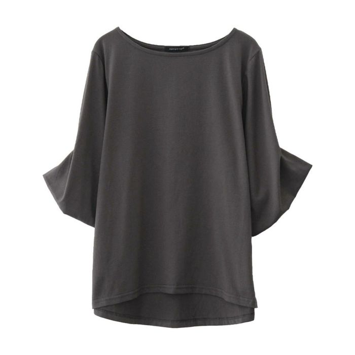 このカットソーは、シンプルながらも袖のデザインにこだわった一枚です。