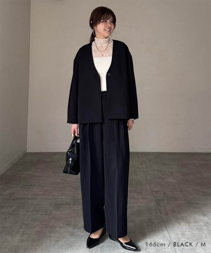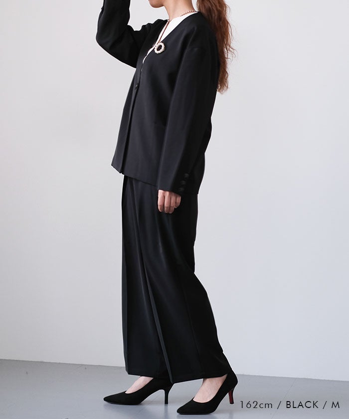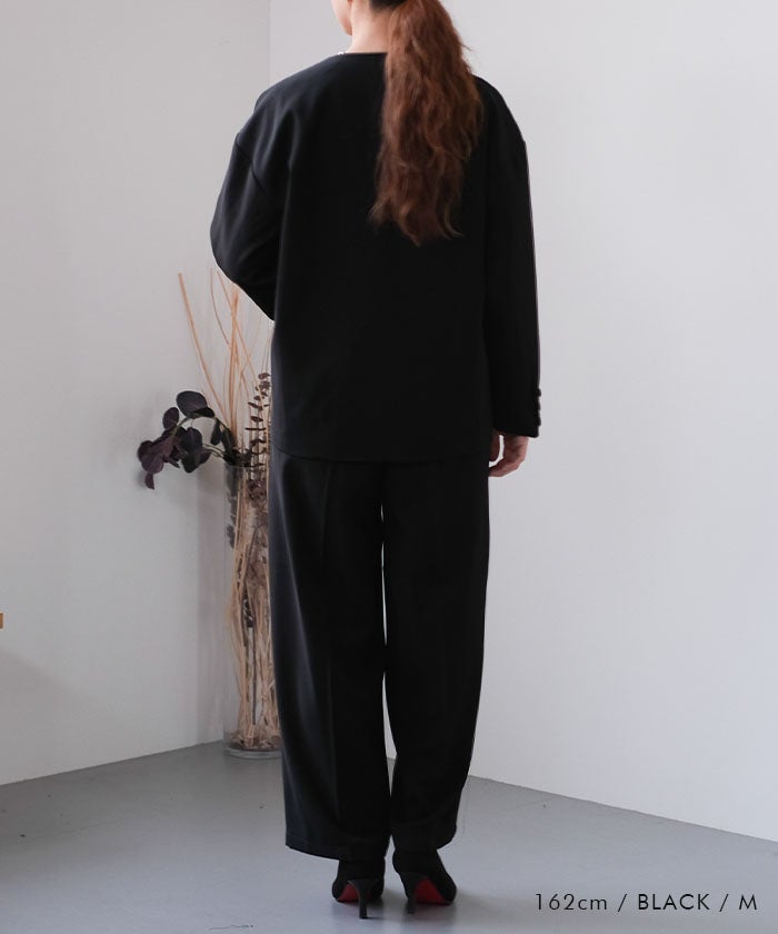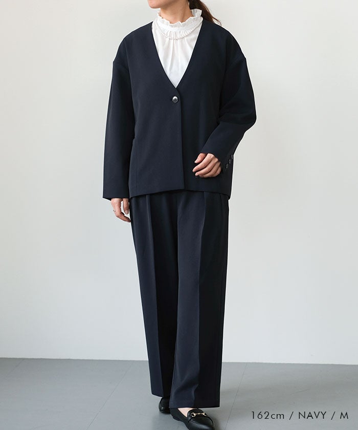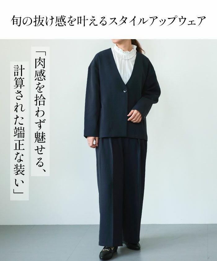 上下セットで着用すれば、統一感のある洗練されたスタイルが即完成。