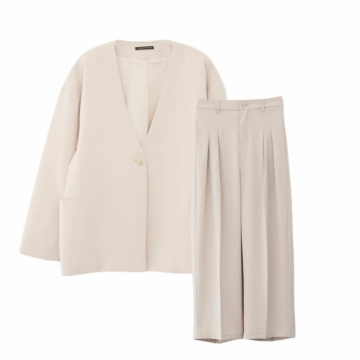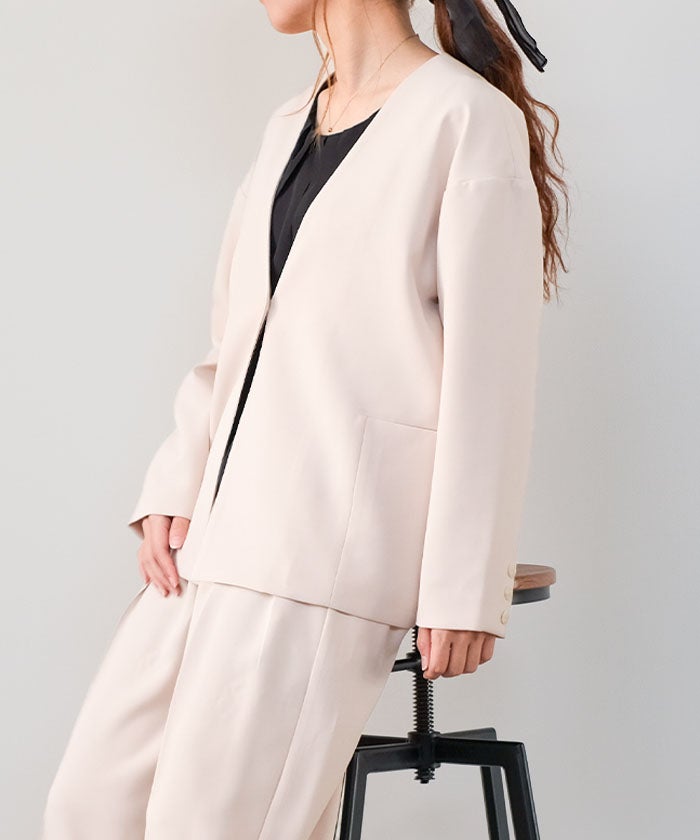 セットアップとして着用すれば、フラットシューズやサンダルを合わせるだけで大人のリラックスコーデが完成。