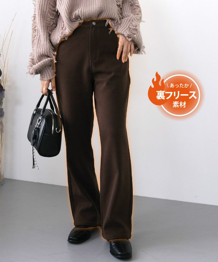 寒い季節にうれしい、裏フリース仕様のストレートパンツ。