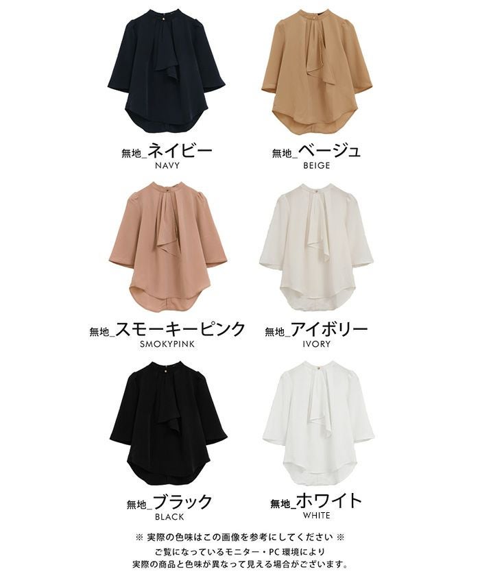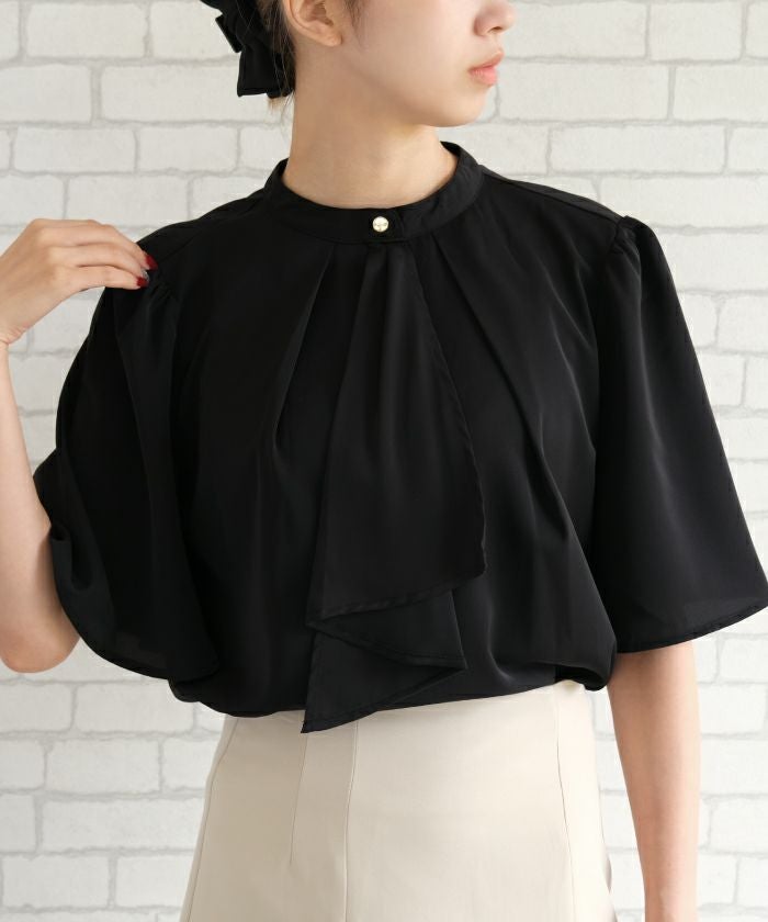 送料無料 スカーフタイフレア袖ブラウス レディース 春 夏 M L 半袖 七分袖 八分袖 ≪ゆうメール便配送20・代引不可≫ | アクアガレージ aquagarage