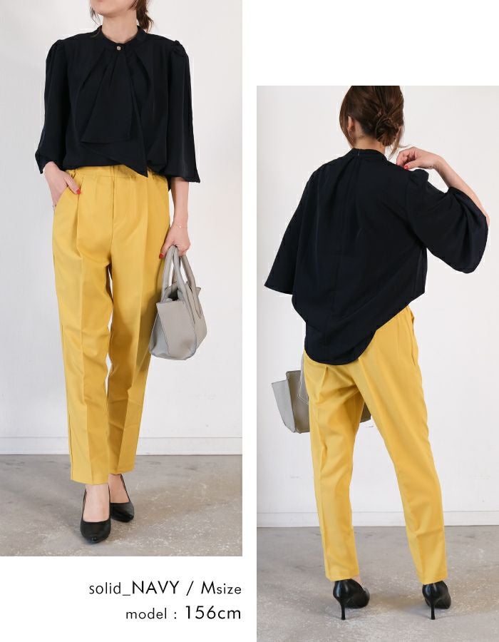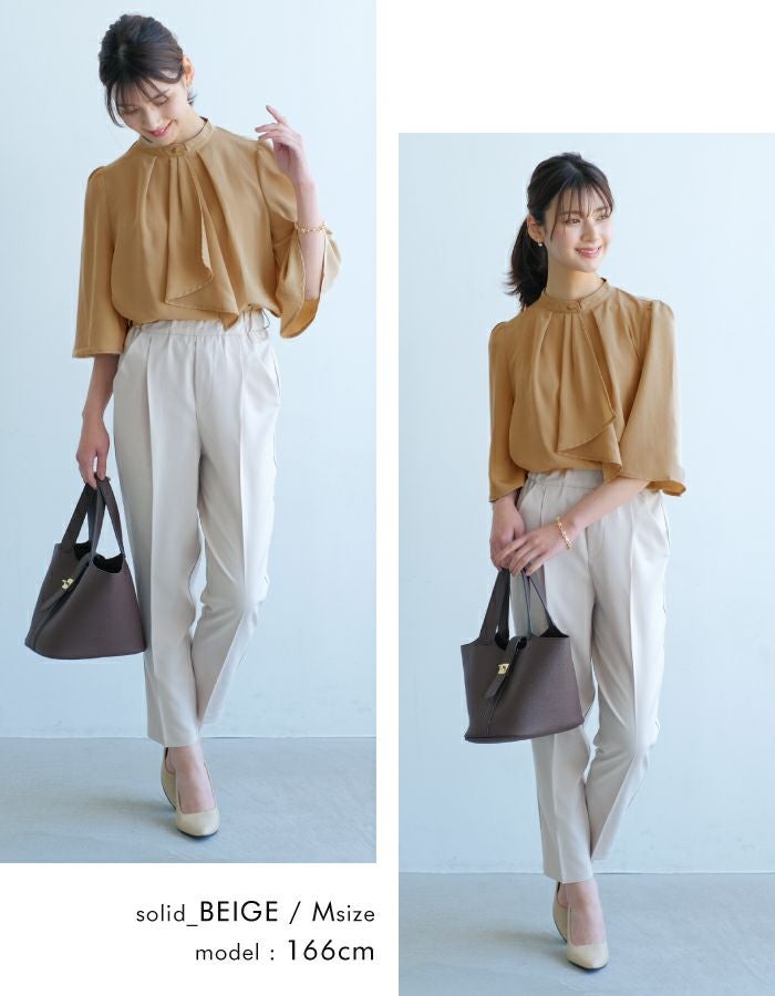 スラックスやタイトスカートと合わせてオフィススタイルに。