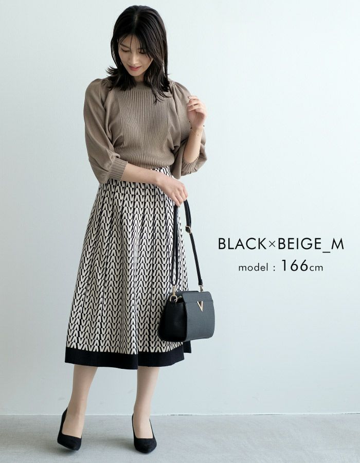• レトロで大人っぽい雰囲気を演出♪幾何学柄ニットフレアスカート