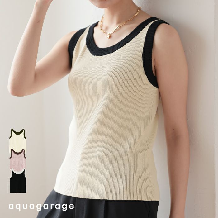 送料無料 配色ニットタンクトップ レディース 春 夏 秋 ≪ゆうメール便配送10・代引不可≫ | アクアガレージ aquagarage