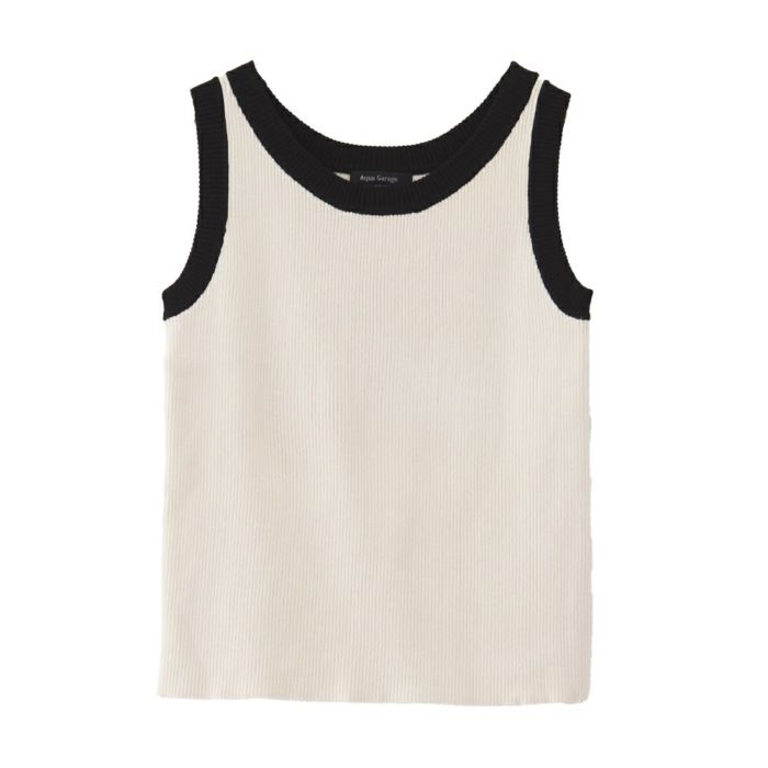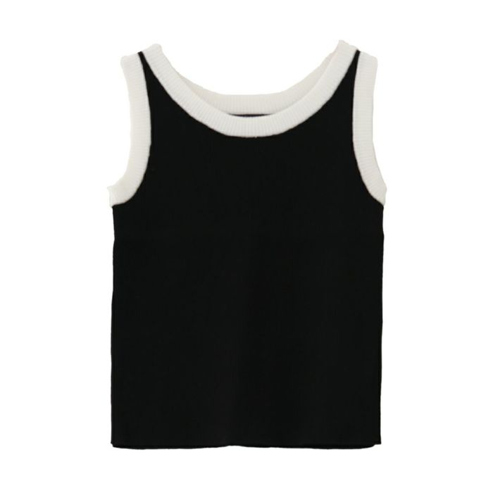 • シンプルながらシルエットの美しい配色ニットタンクトップ