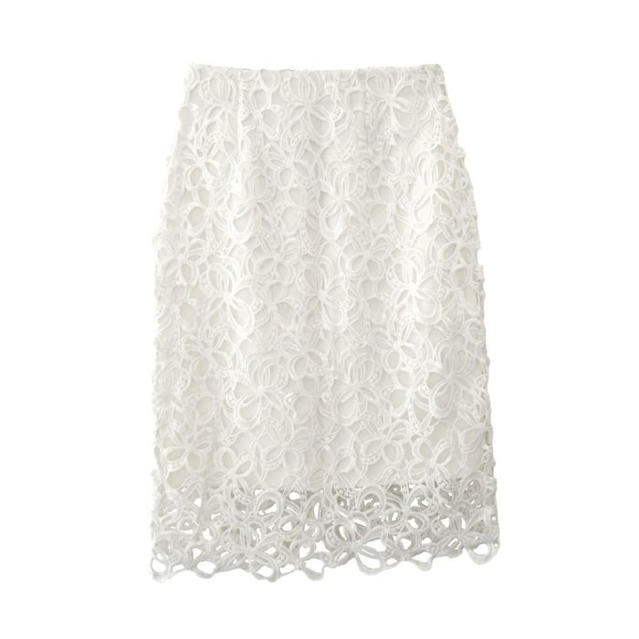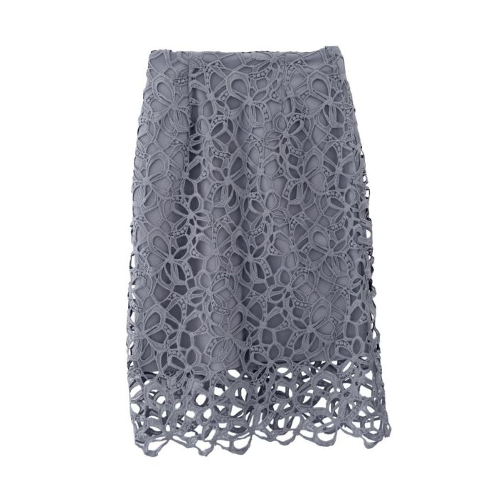 エレガントな花柄レースが特徴のタイトスカートで、春から秋、冬までシーズンを問わず活躍します。