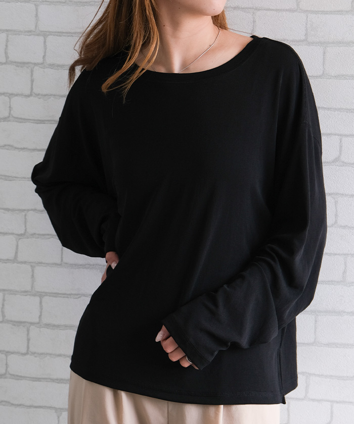 • 程よい透け感と指穴デザインで、旬な抜け感を演出するシアートップス。