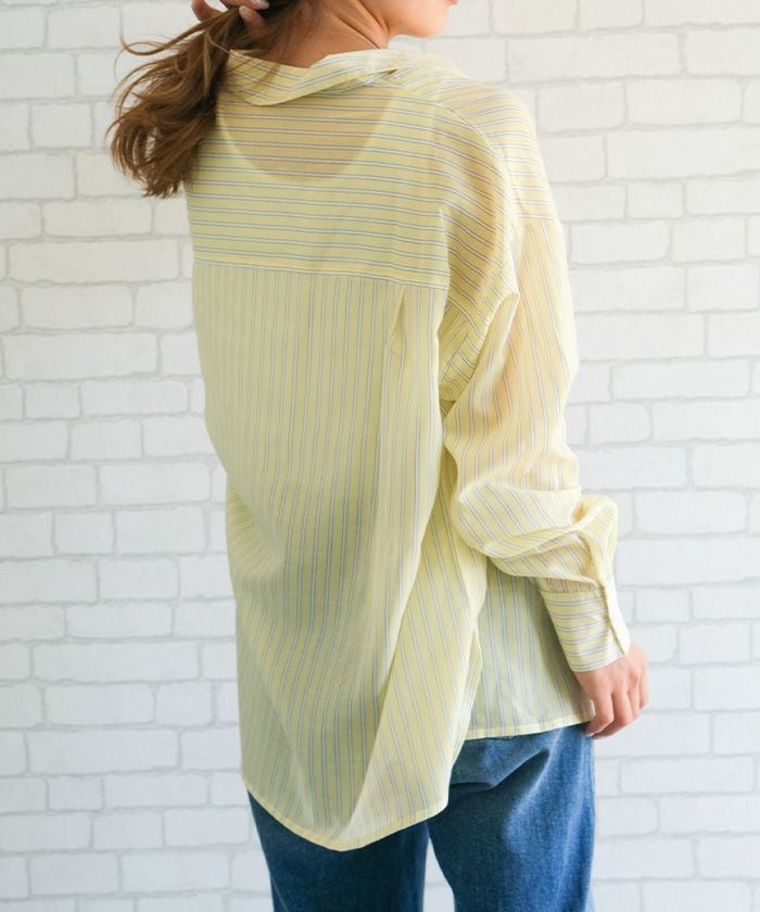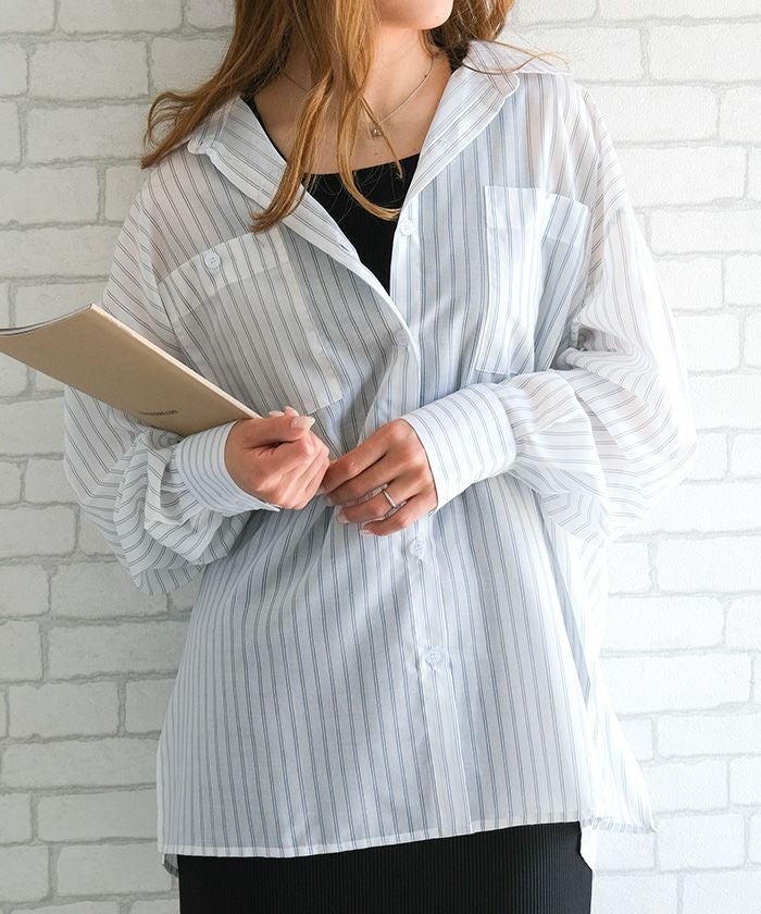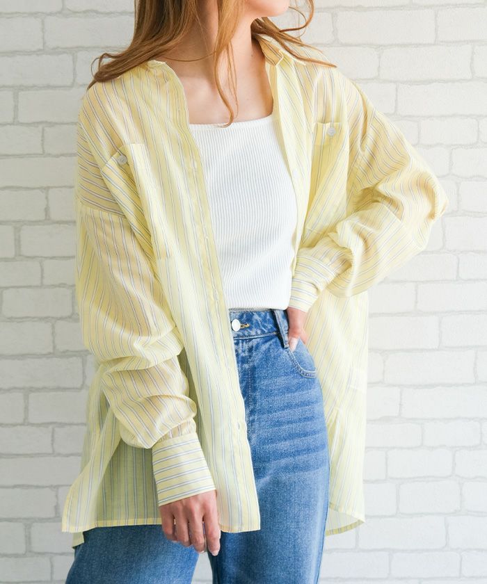 軽やかな素材感と洗練されたデザインが魅力の一枚です。透け感のあるシアー素材が、春夏の装いに涼しげな印象をプラス。