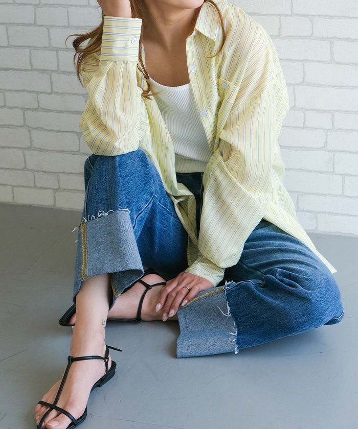 インナーにキャミソールやタンクトップを重ねて、透け感を楽しむのもおすすめ。