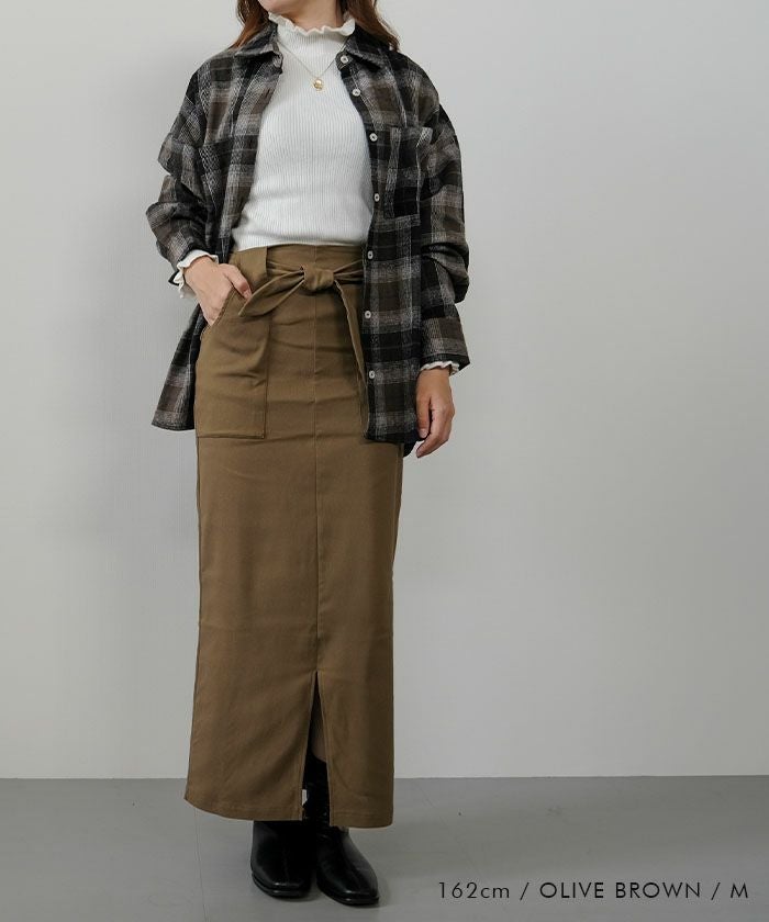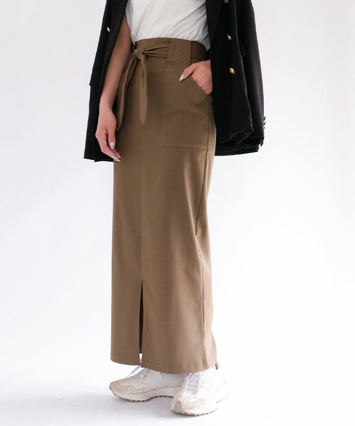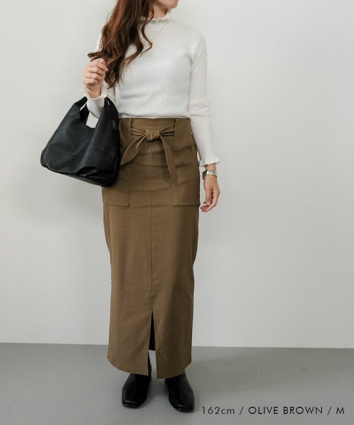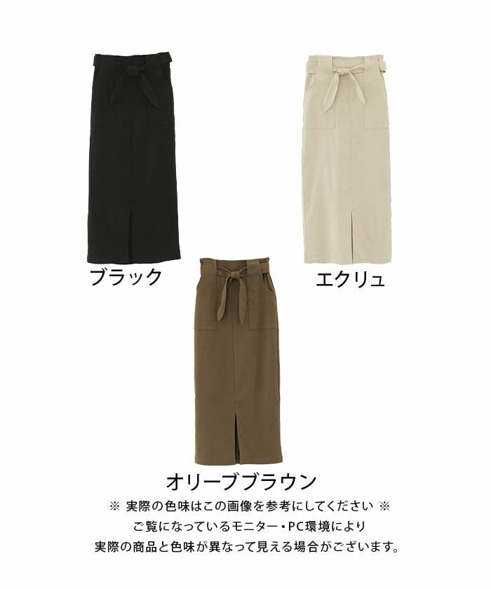 すっきりとしたIラインシルエットに、ウエストのリボンディテールがアクセントとなり、女性らしさとこなれ感を演出してくれます。