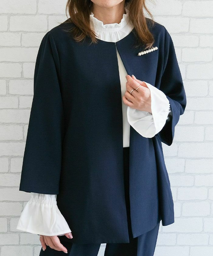 ジョーゼット素材なのでシワになりにくく、きちんと感がありながらお手入れも気軽にできるのが嬉しいポイントです。