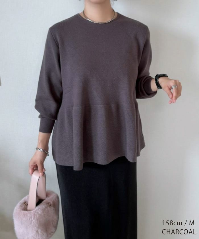 細身のデニムやスラックスにさらりとイン。ウエストの絞りとフレアが自然に映え、スタイルアップ効果は抜群です。