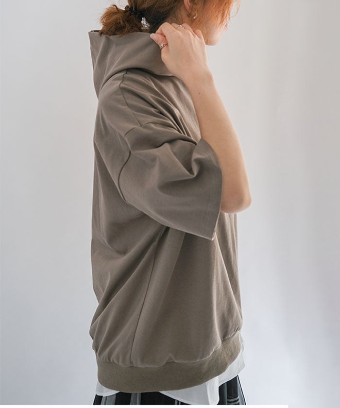 カジュアルな印象のパーカーを、半袖デザインで軽やかに仕上げた一着。