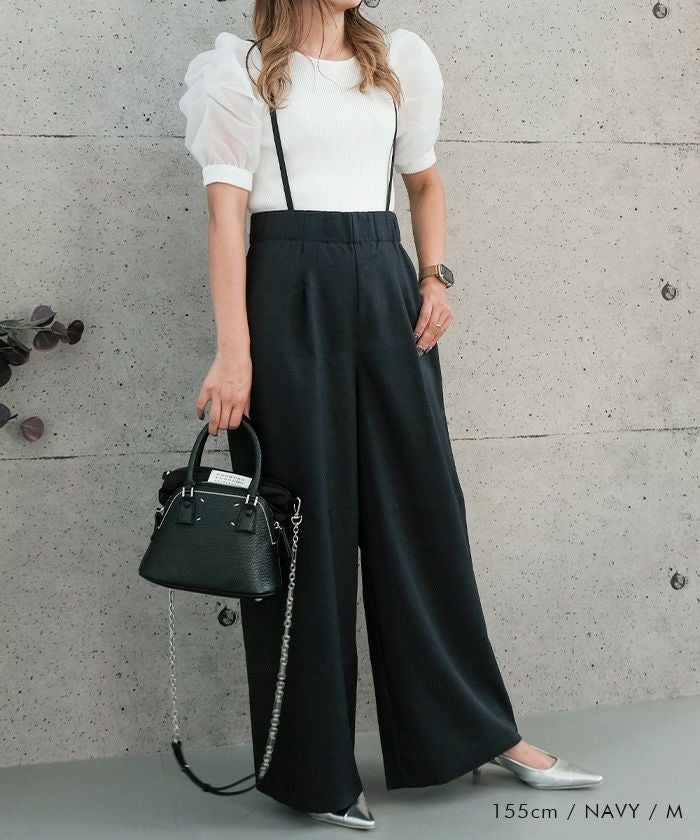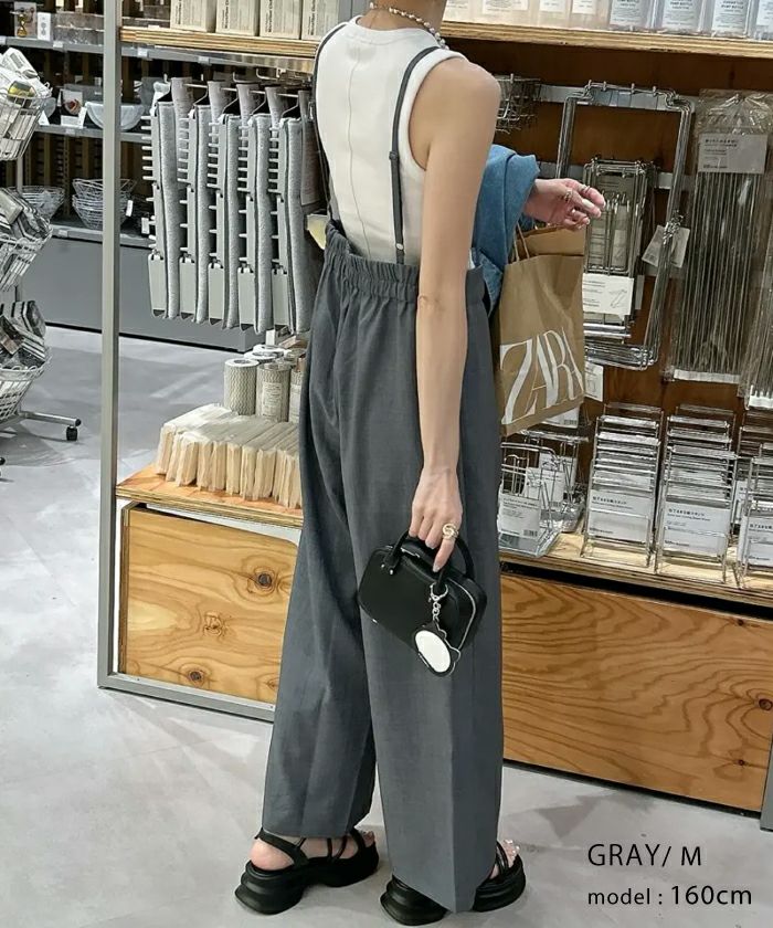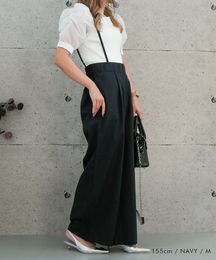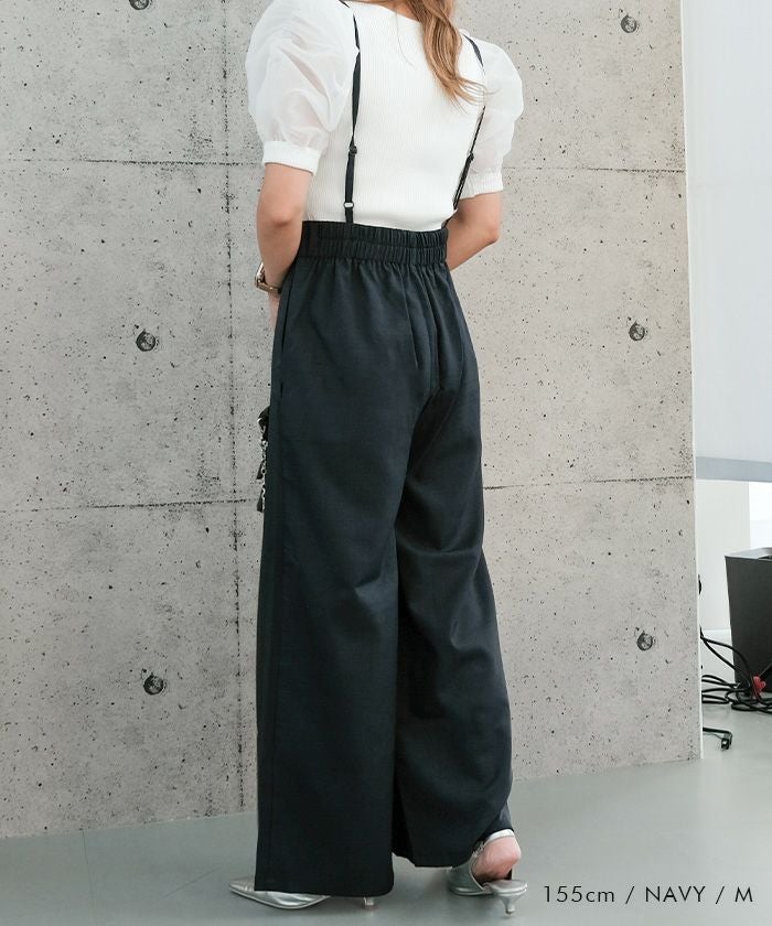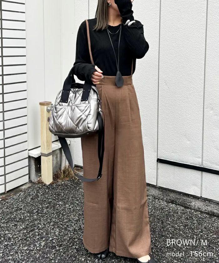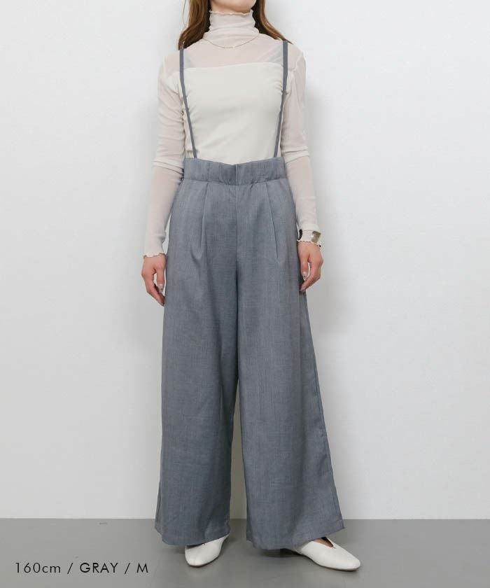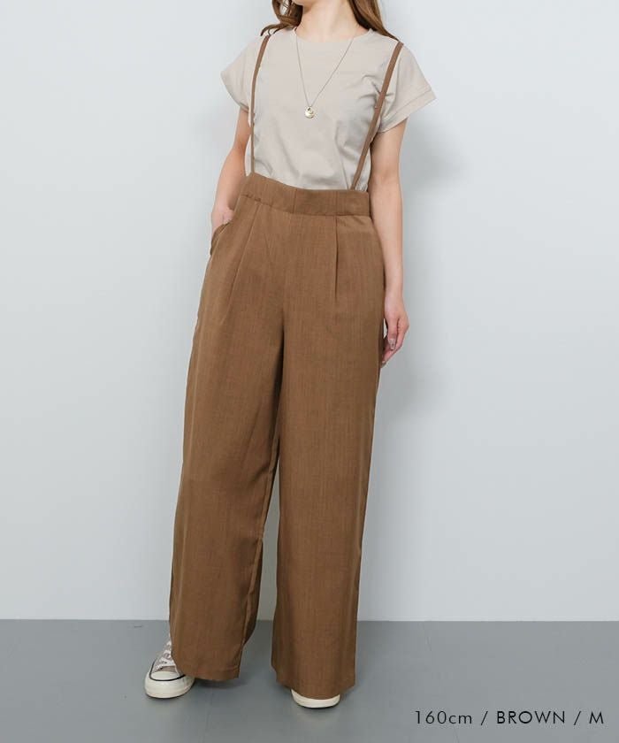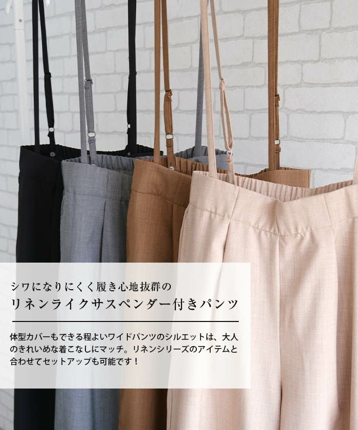 送料無料 リネンライクサスペンダー付きパンツ レディース 春 夏 秋 M ≪ゆうメール便配送30・代引不可≫|アクアガレージ aquagarage