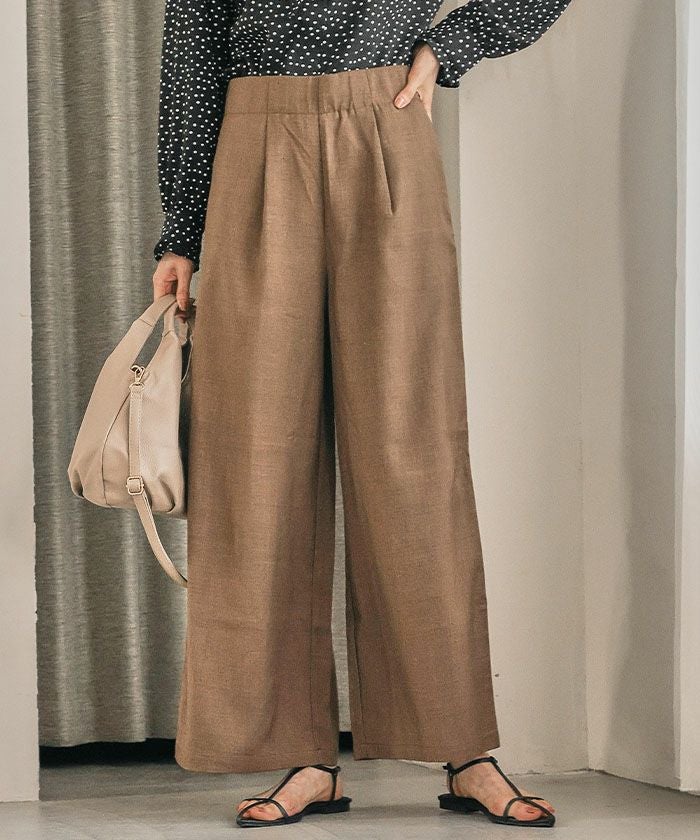 リネン風のナチュラルな素材感と、脚をまっすぐ見せる美シルエットで、カジュアルにもきれいめにも着回せる万能アイテムです。