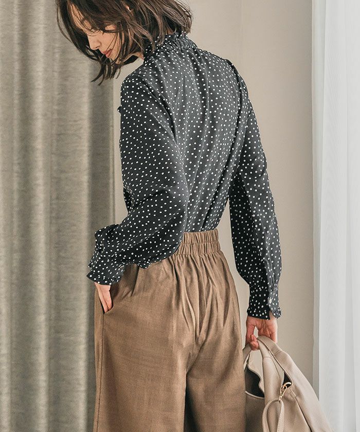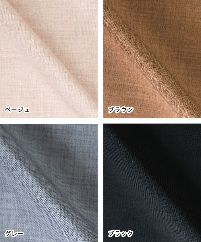 リネンライクな風合いのポリエステル混素材で、軽やか&シワになりにくいのが特徴。