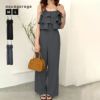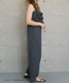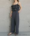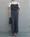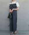動くたびにふわっと揺れるフリルが印象的な、女性らしい雰囲気漂うオールインワン。