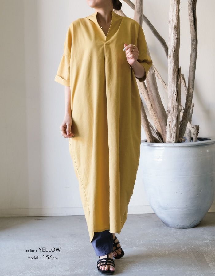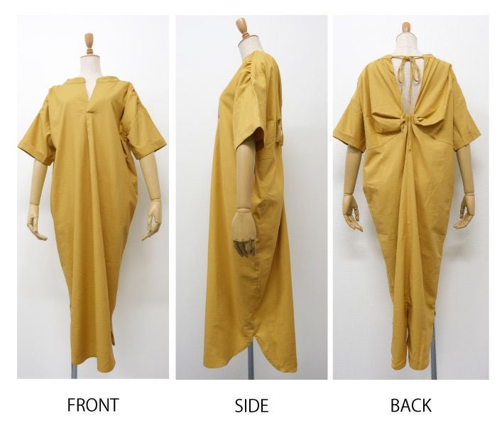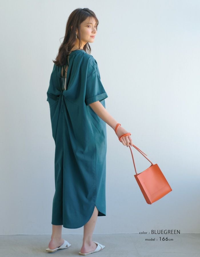 • 着心地軽やか、1枚でコーデが決まるバックデザインVネックワンピース