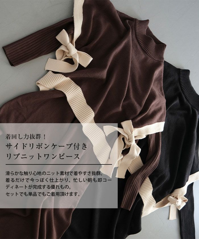 送料無料 サイドリボンケープ付きリブニットワンピース レディース 秋 冬 | アクアガレージ aquagarage