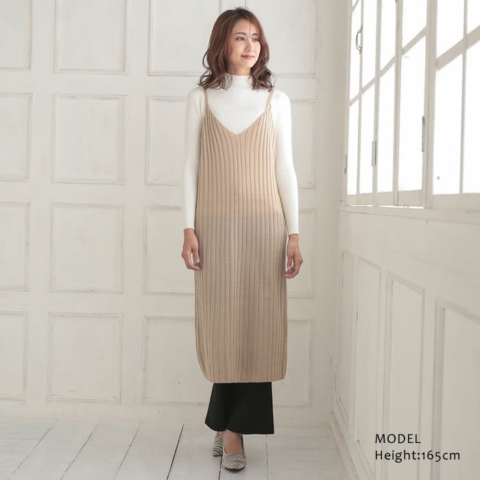 • 柔らかな素材のリブ編みキャミソールニットワンピース。