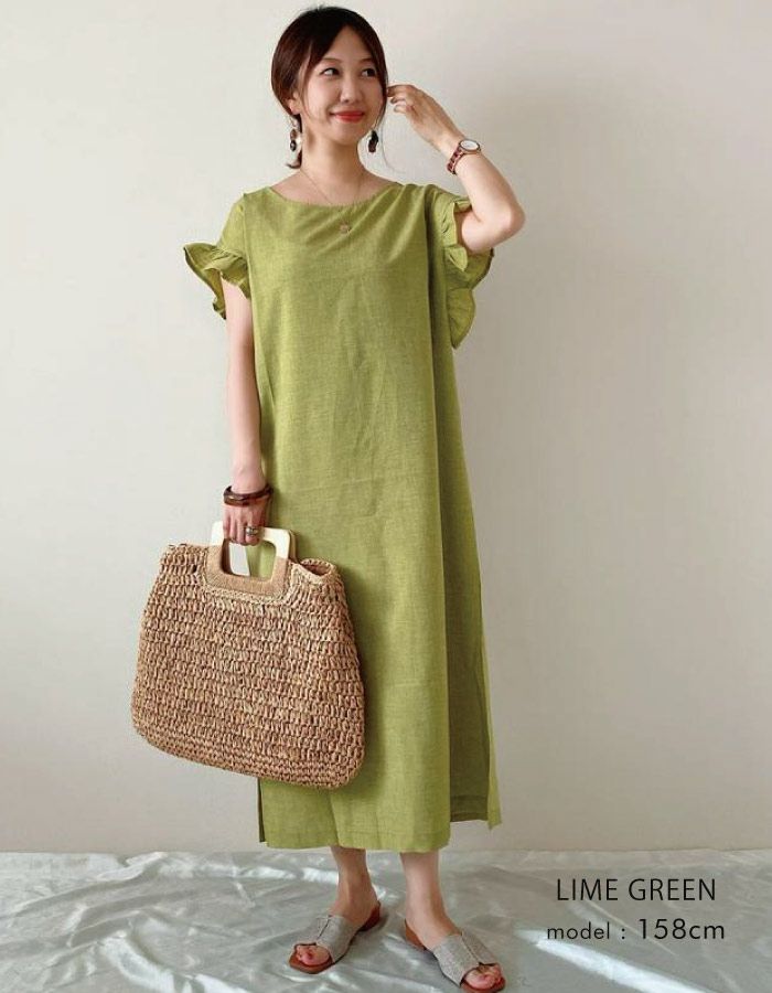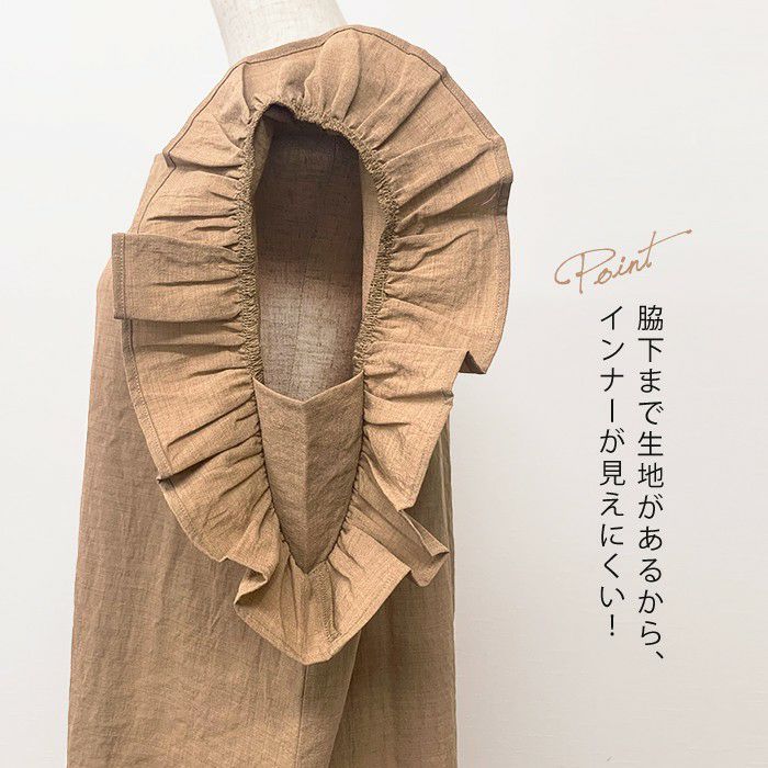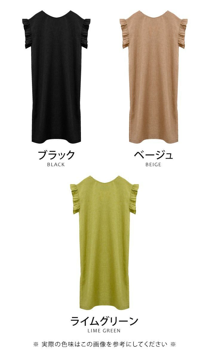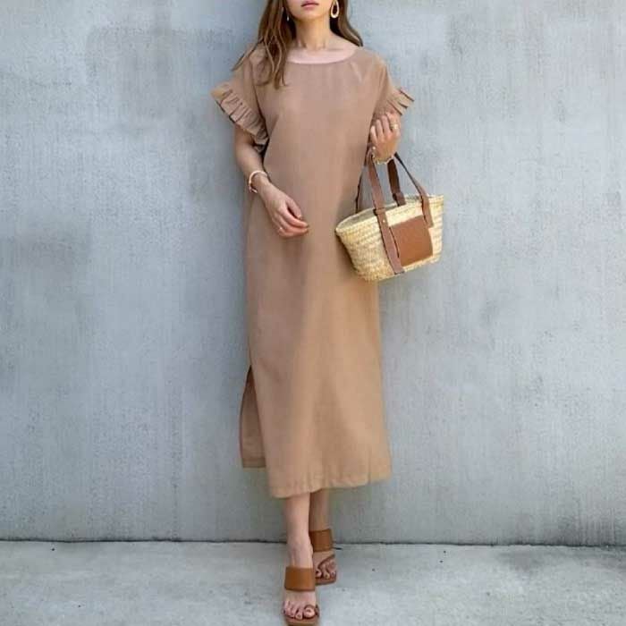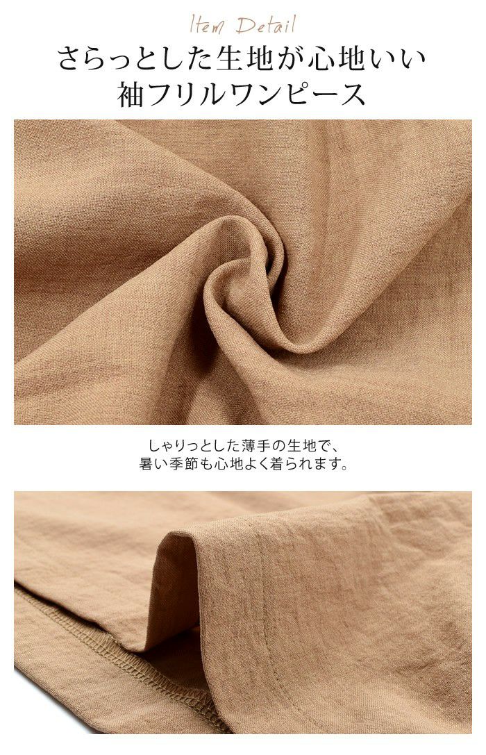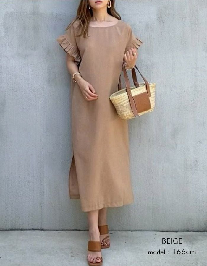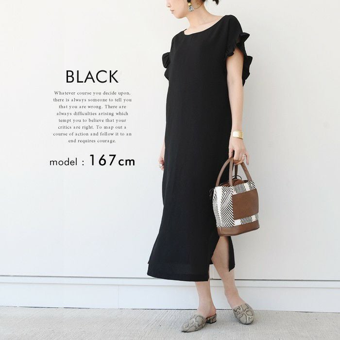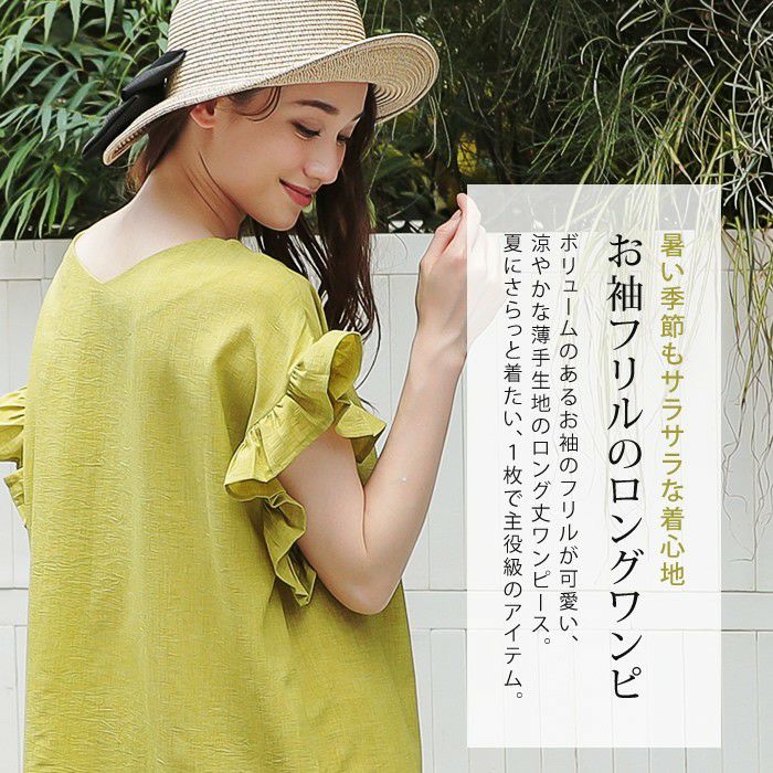 • 暑い季節もサラサラな着心地!お袖フリルのロングワンピ。