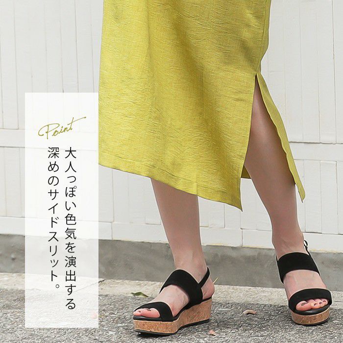 大人っぽい色気を演出する深めのサイドスリット。
