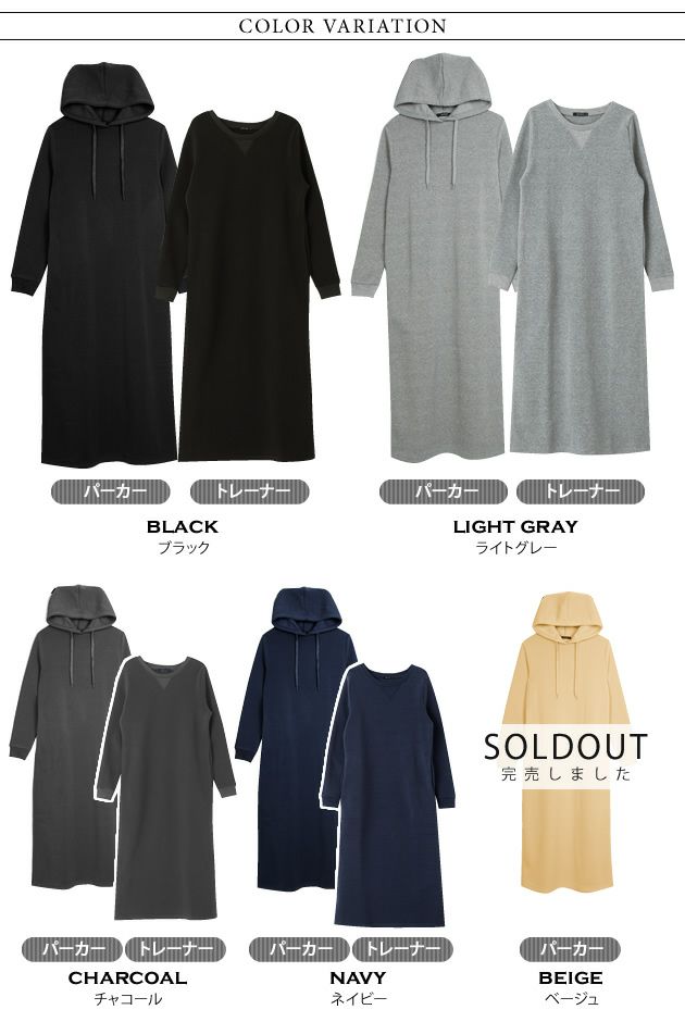 送料無料 パーカー&トレーナーアンクル丈ワンピース 裏起毛 | アクアガレージ aquagarage