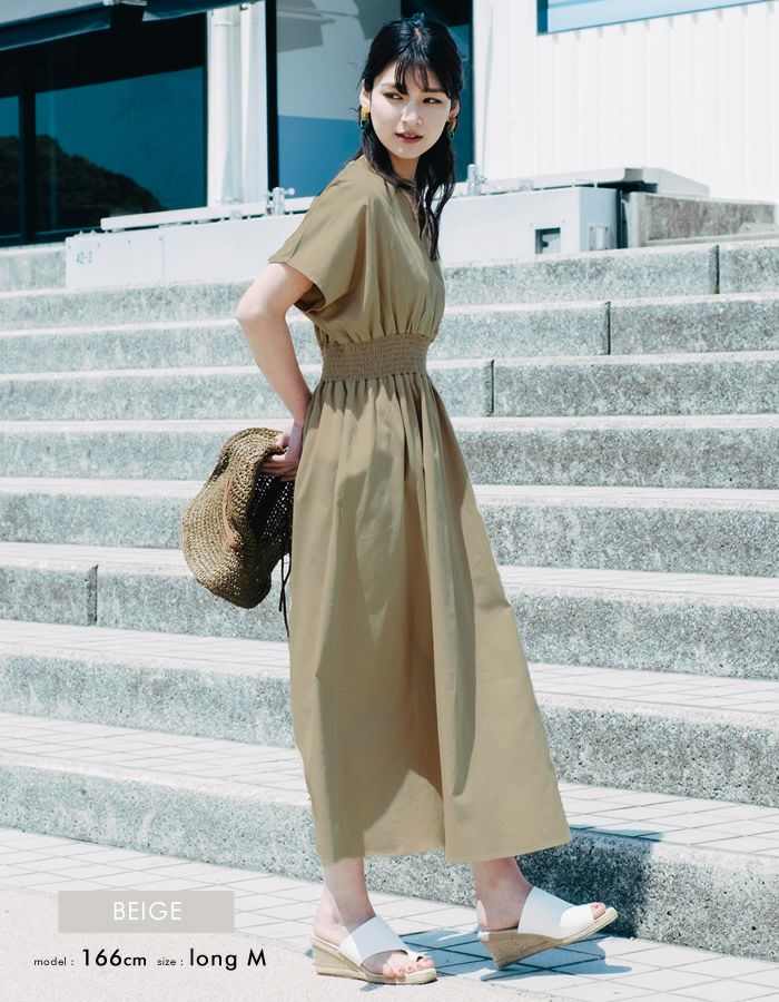 送料無料 シャーリングロングワンピース 春 夏 秋 ≪ゆうメール便配送30・代引不可≫ | アクアガレージ aquagarage