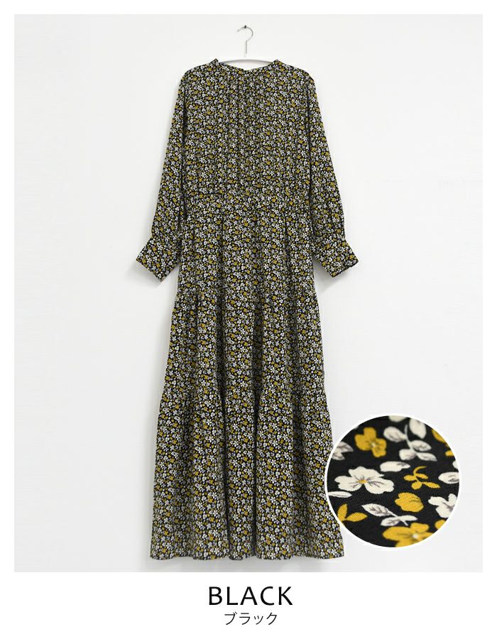 送料無料 花柄ティアードワンピース レディース 春秋冬 長袖 マキシ丈 S M L | アクアガレージ aquagarage
