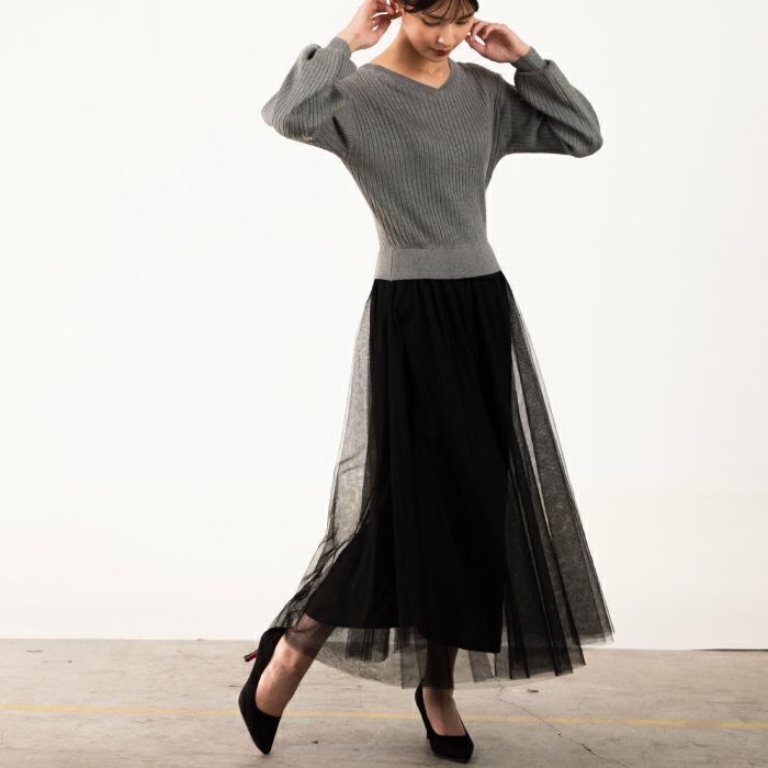【最終値下げ価格】異素材ドッキングワンピース レディース 秋 冬 オーバーサイズ | アクアガレージ aquagarage