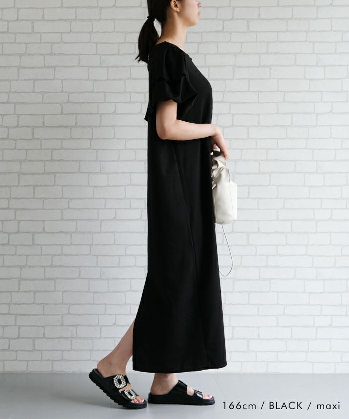 送料無料 フリル袖ロングワンピース レディース 春 夏 ロング丈 ≪ゆうメール便配送20・代引不可≫ | アクアガレージ aquagarage