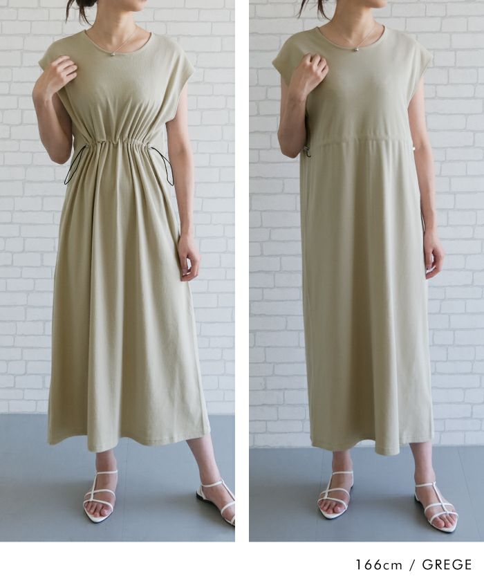送料無料 テレコウエストドロストワンピース 春 夏 秋 M レディース ≪ゆうメール便配送30・代引不可≫ | | アクアガレージ aquagarage