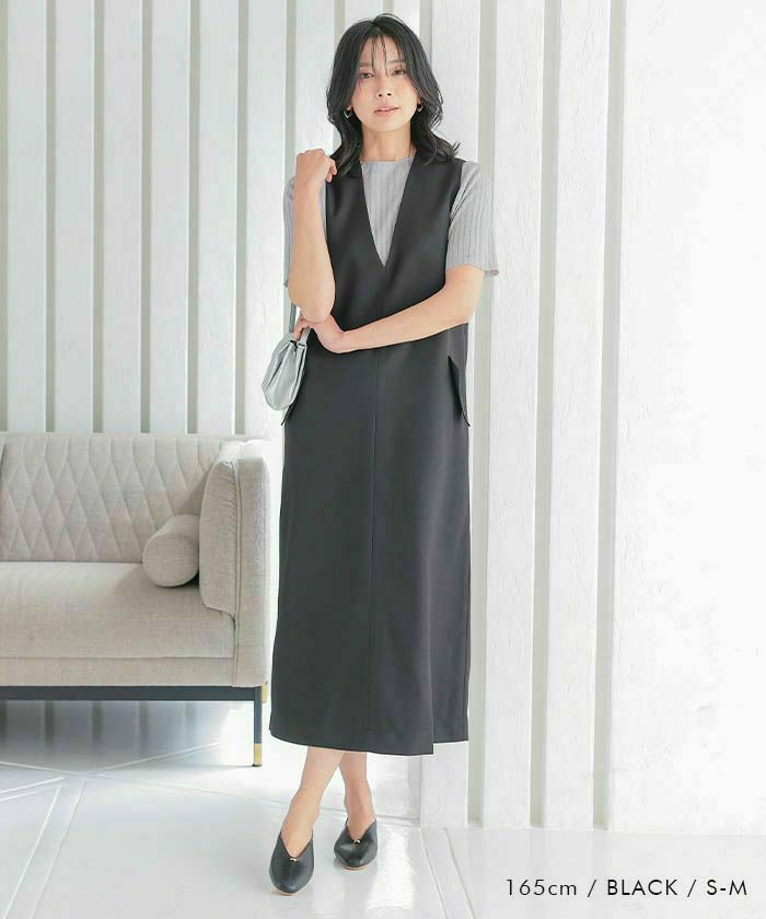 送料無料 ポンチ素材深めスリットワンピース | アクアガレージ aquagarage