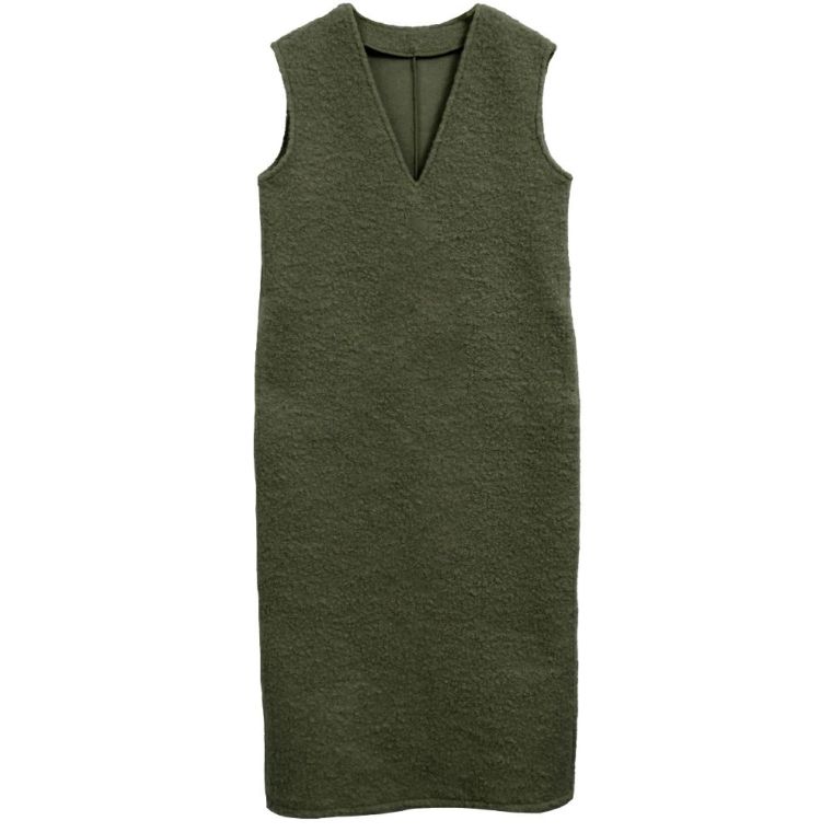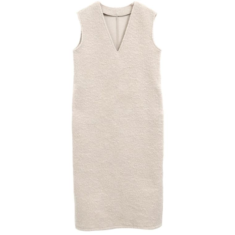 くるくるとした表面の起毛がキュートなVネックワンピース。 ストンと落ちるシンプルなIラインシルエットでこなれた印象に。 大きめのVネックなので、デコルテや顔周りもスッキリ華奢魅せ◎ 深めのバックスリットが入っていて動きやすいのも嬉しいポイント。 両サイドにはポケットも付いていて、機能面もバッチリです♪
