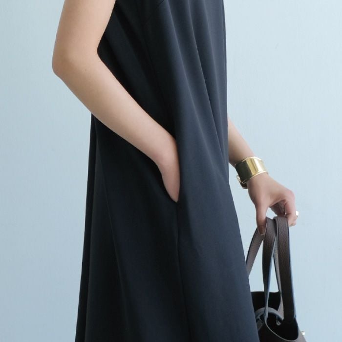 楽ちんな着心地と美しいシルエットを両立する、ノースリーブワンピース。