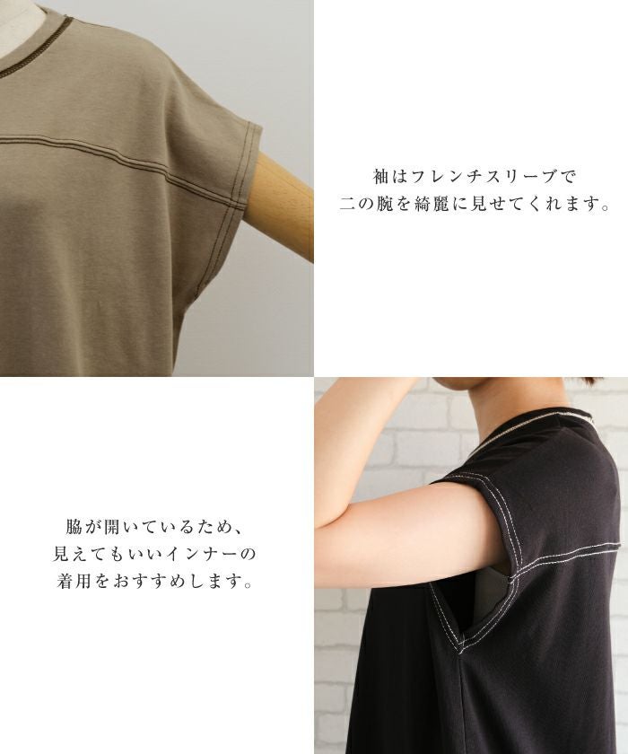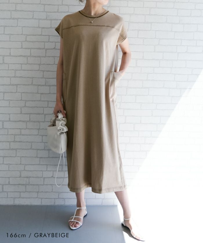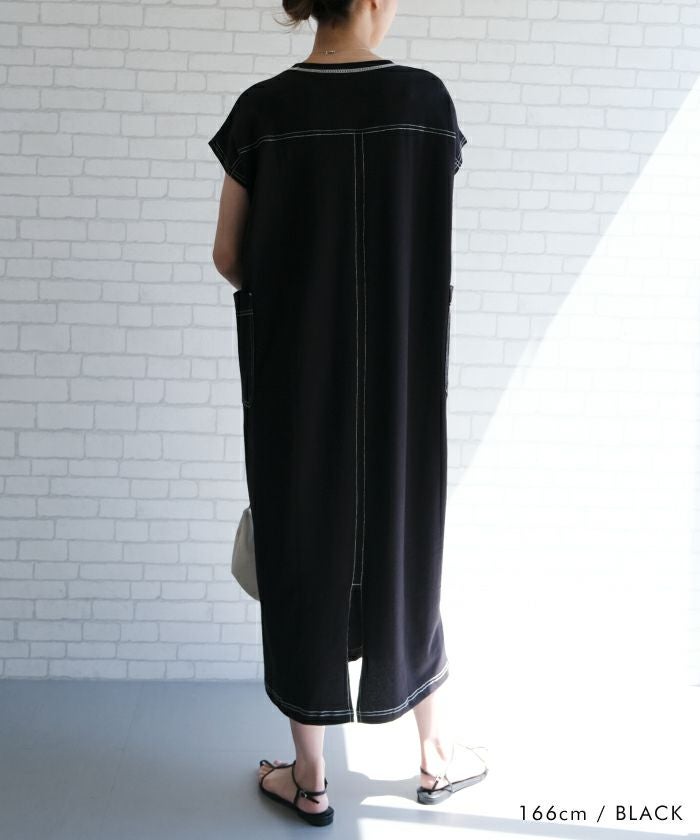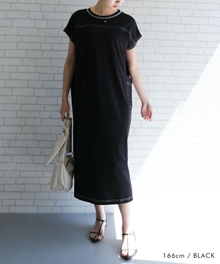 • 配色ステッチがこなれ感たっぷりなワンピース