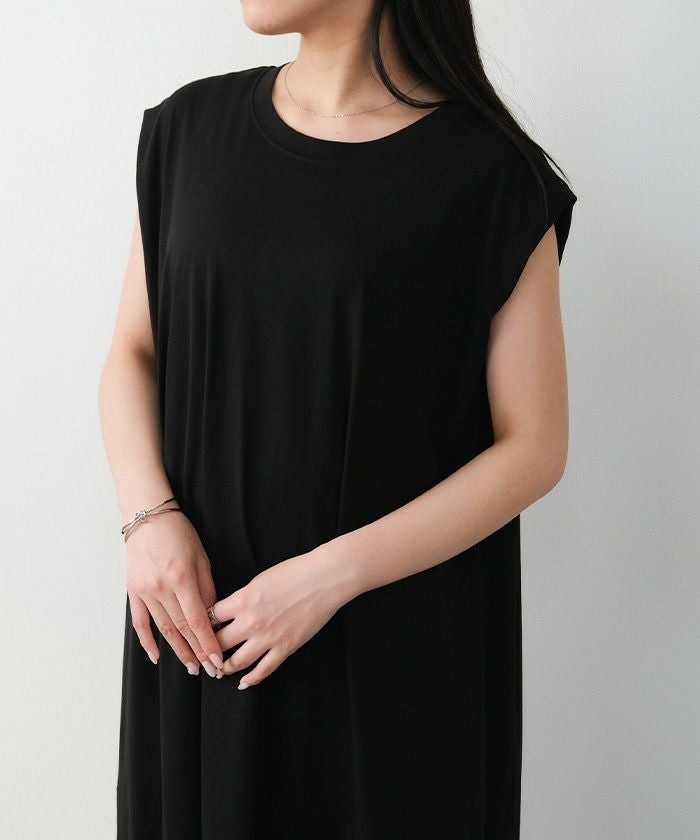シンプルながらも洗練されたデザインが魅力のノースリーブワンピース。​