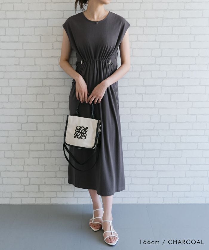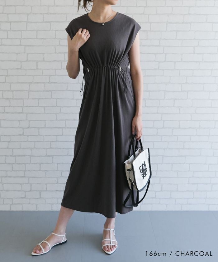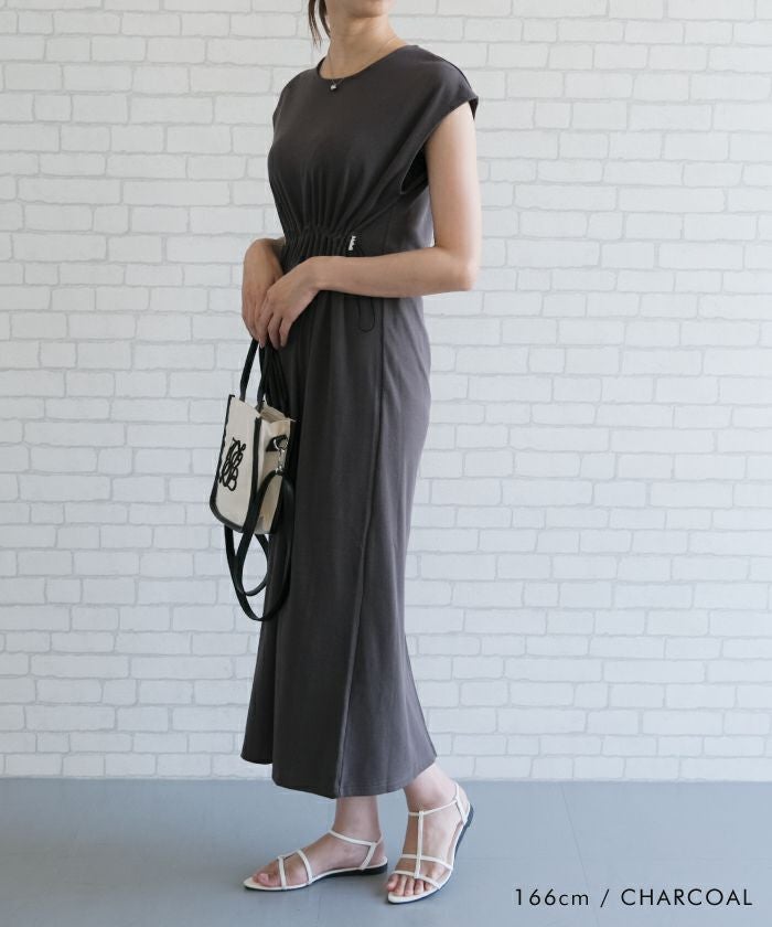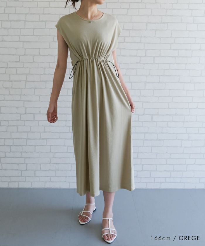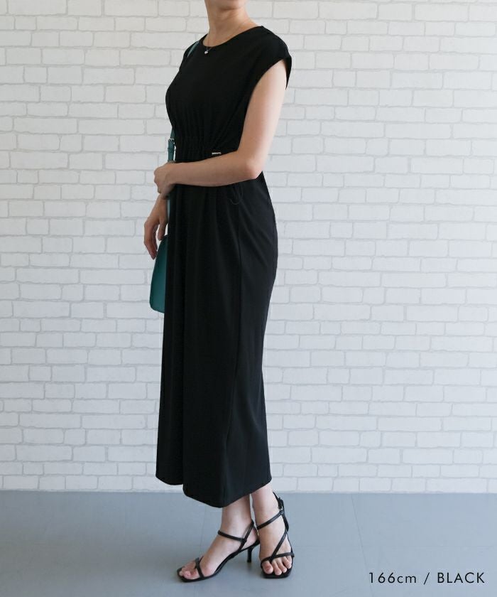 送料無料 テレコウエストドロストワンピース 春 夏 秋 M レディース ≪ゆうメール便配送30・代引不可≫ | | アクアガレージ aquagarage