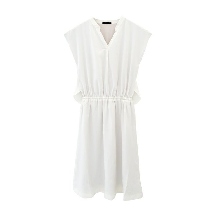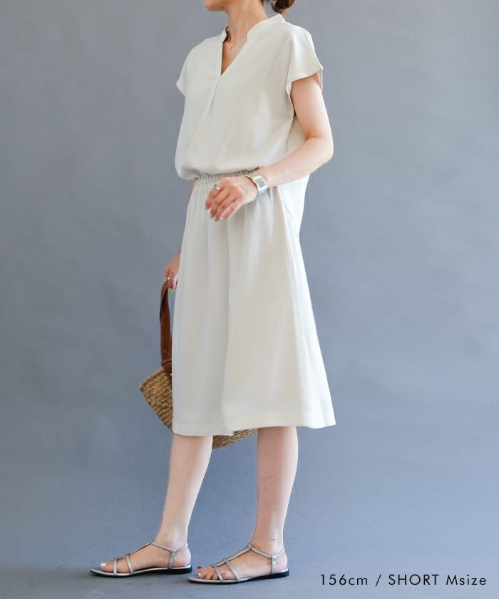 クラシカルな雰囲気の上品ワンピはスキッパーデザインで抜け感を出して。