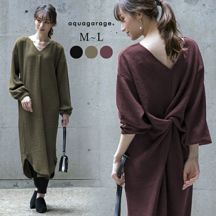 【最終値下げ価格】ツイストワンピース レディース ロング丈 長袖 M L 大きいサイズ | アクアガレージ aquagarage